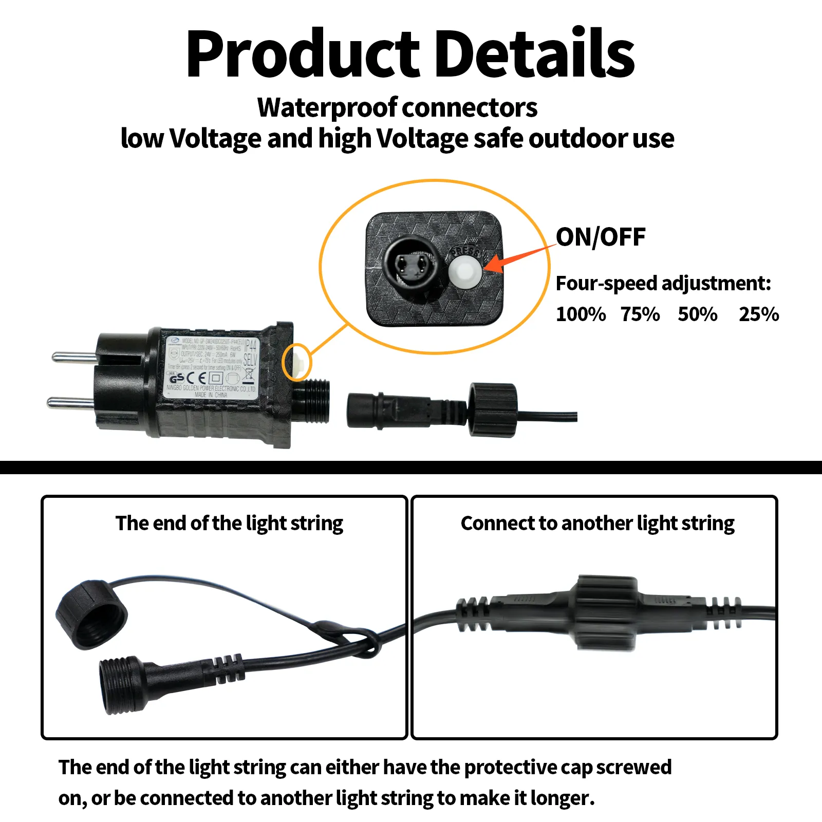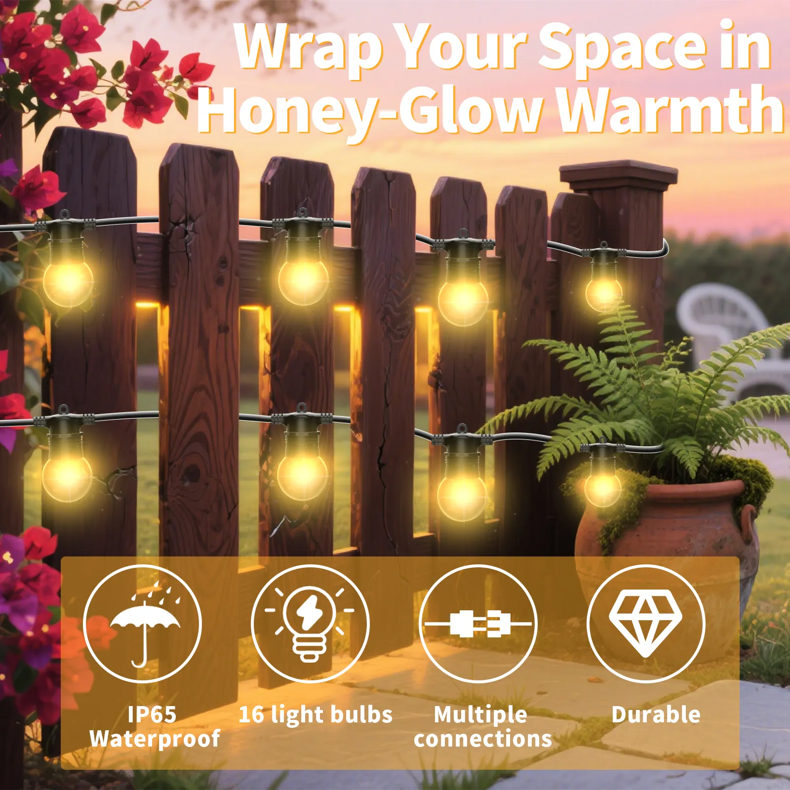 Our products feature an IP65 waterproof rating with excellent weather resistance, making these fairy lights perfect for various outdoor environments and long-term durability.