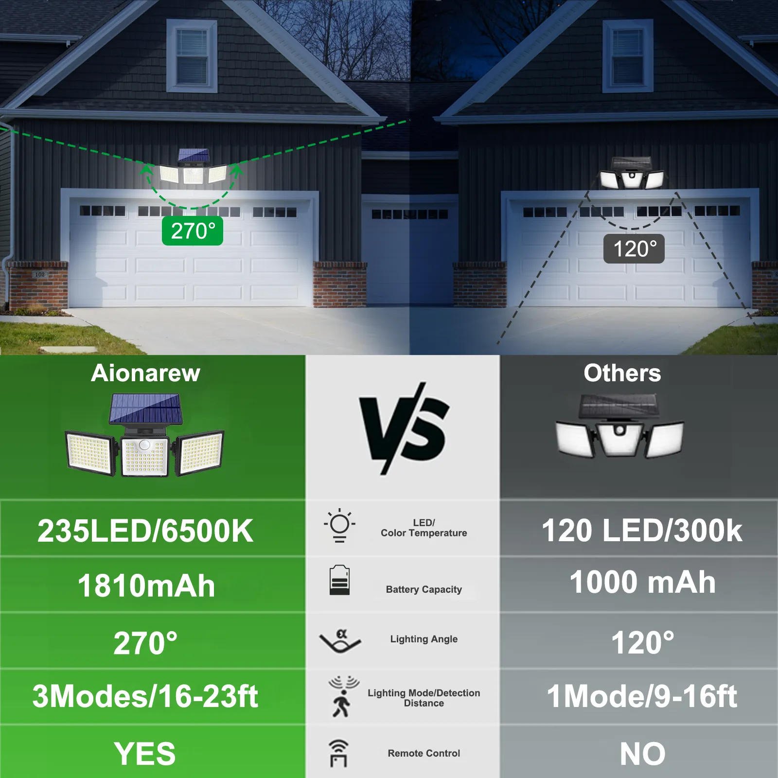 🏡Garages & Driveways:Illuminate driveways for safer parking at night — motion sensor activation helps deter unwanted visitors.