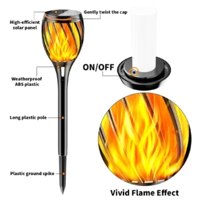 19” Flickering Flame Solar Torch Lights – Outdoor Waterproof LED with Ground Stake for Garden, Pathway, Patio Decoration